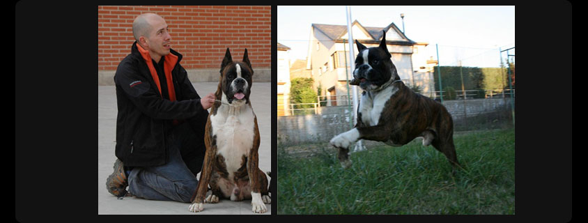 CH ATIBOX, INT CH, CH IT OLIMPIO del Colle del'Infinito Geburtsdatum: 18.07.1988),Farbe: brindle with white markings |